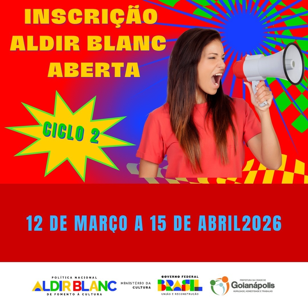 A Prefeitura de Goianápolis, por meio da Secretaria Municipal da Educação e Cultura, torna público o Edital de Chamamento Público nº 01/2026. O objetivo é a seleção de 7 projetos para firmar Termos de Execução Cultural com recursos da Política Nacional Aldir Blanc (PNAB), destinando um montante total de R$ 114.045,58 para o fomento da cultura local.